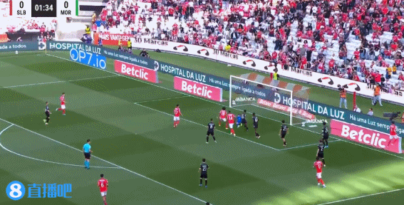 上半场补时3分钟,本菲卡2-1莫雷拉东说念主。