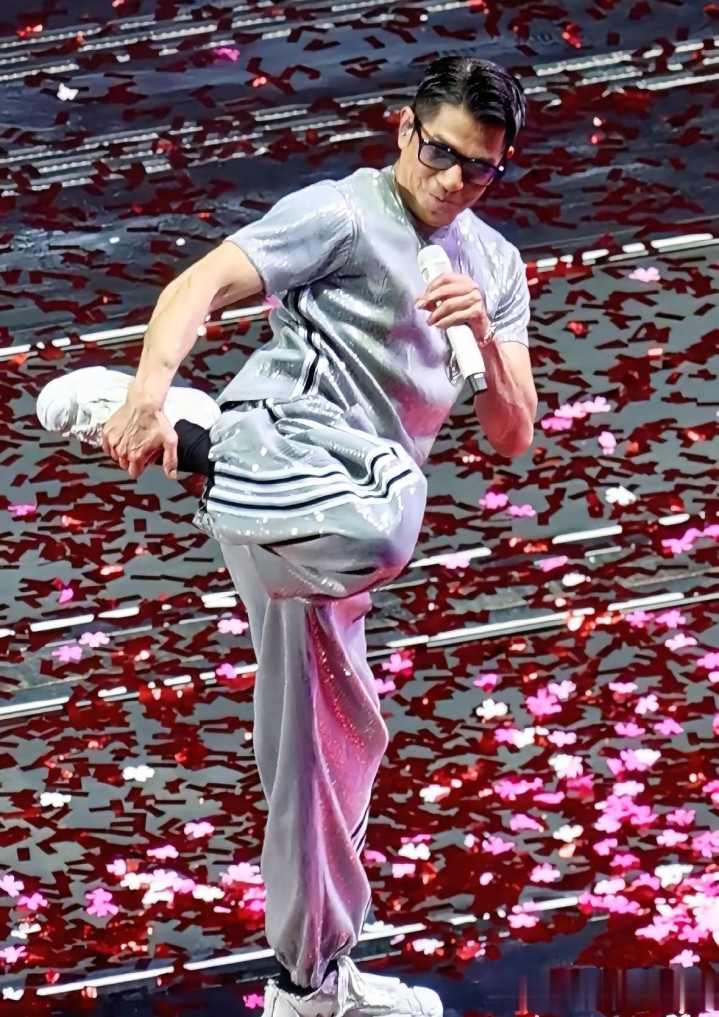 早先入手的是周润发,他抬手精确复刻了郭富城1990年经典代表作《对你爱不完》里国民级的旋转手心牌号当作,紧接着又效法起郭富城舞台上标记性的后踢腿舞步。
