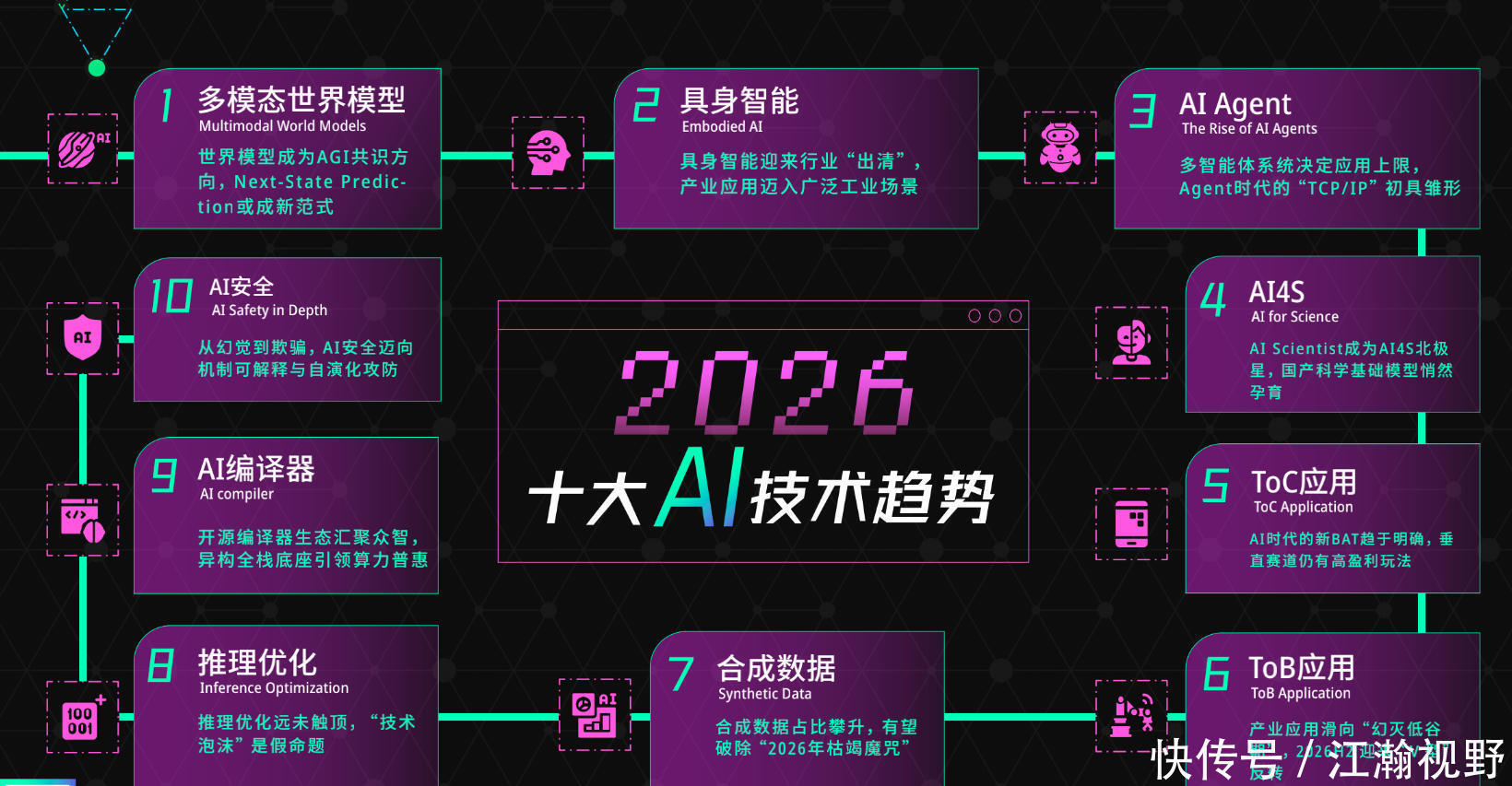 2026年1月8日,北京智源东谈主工智能商议院(以下简称“智源商议院”)发布年度敷陈《2026东谈主工智能十大趋势》。敷陈指出,东谈主工智能的演进中枢正发生关节出动:从追求参数范围的言语学习,迈向对物理宇宙底层次第的长远清爽与建模,行业本事范式迎来重塑。这十大趋势有什么重心值得咱们关爱吗?