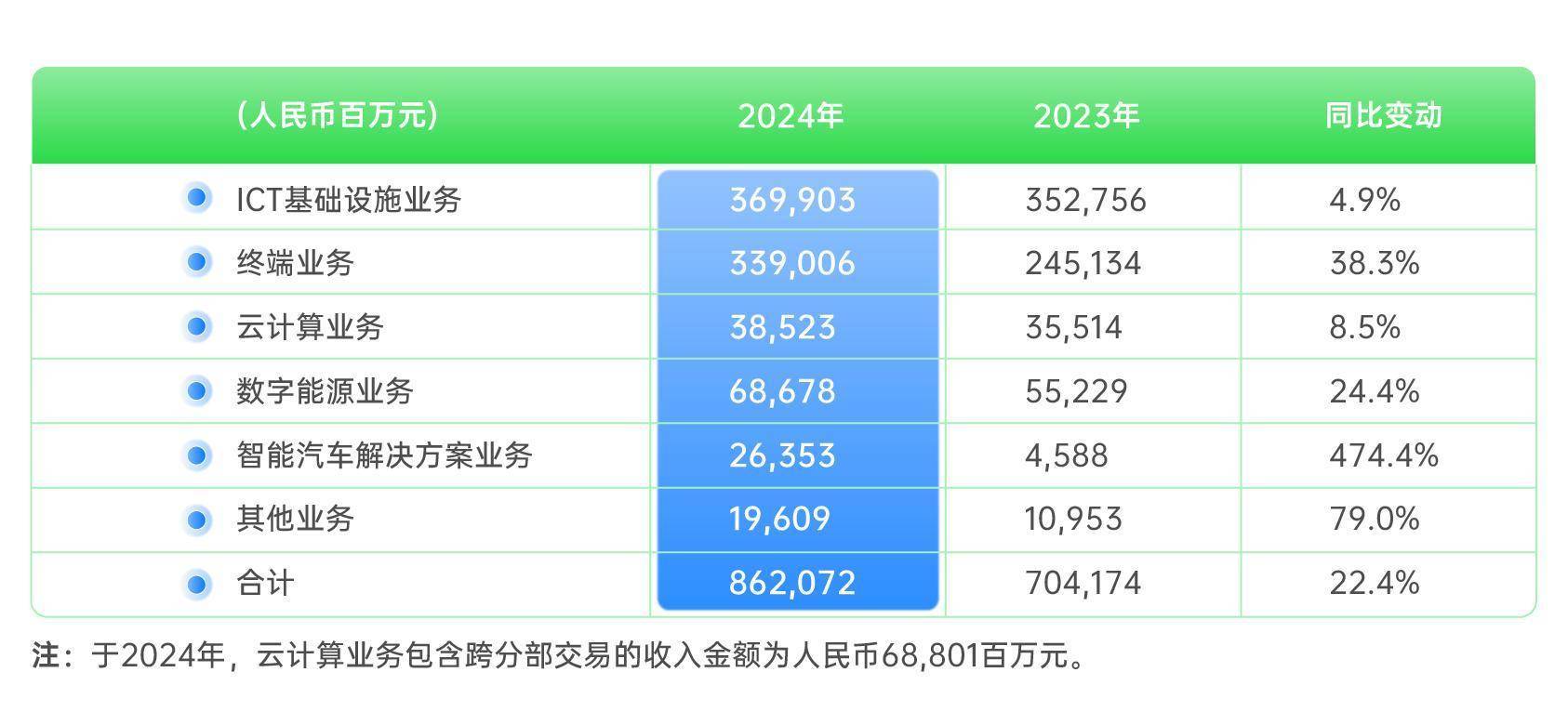 比年来,在靠近严厉的制裁及挑战下,华为仍作念出了一些成绩。24年,华为的ICT(信息与通讯技艺)基础设施业务、末端业务、云蓄意业务、数字动力业务、智能汽车惩处有筹办这五伟业务板块齐达成了不同进度的销售增长,智能汽车惩处有筹办也初次达成夙昔盈利。