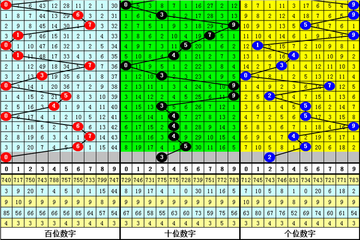 百位分析:百位最近9期出号:7-3-0-5-4-0-6-7-6,奖号012路比为5:3:1,大小比为5:4,奇偶比为4:5,本期百位参考号码035。