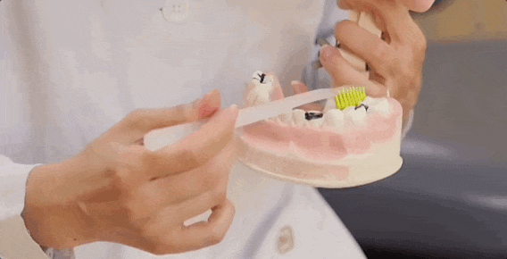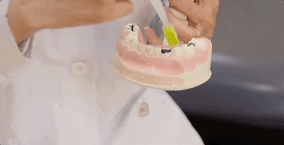 刷牙齿外侧面时,继承画圈的花式操作,另一侧外侧面同理,这种刷牙当作比拟水平震颤法更易掌持;