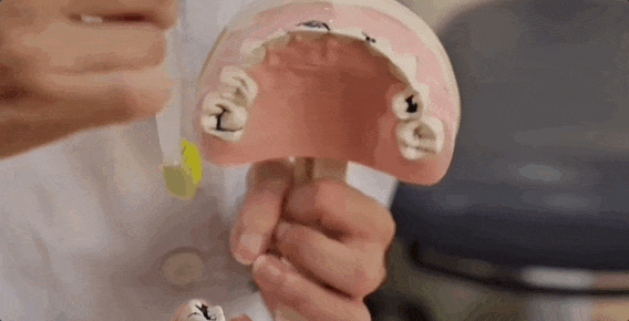咬合面是相对容易清洁的部位,继承拉锯式往来刷即可。