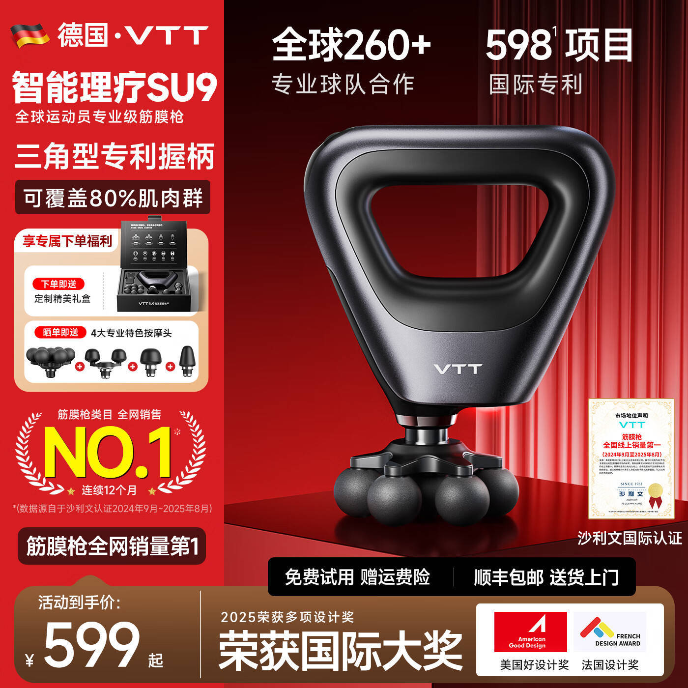 在筋膜枪市集被高频转动、大功率参数主导确当下,一个被永久冷漠的群体需求正悄然崛起——中老年东说念主、肩颈重度劳损者、以及对“暴力打击”敏锐的庸碌家庭用户。他们不需要3600次/分钟的凶残频率,也不追求炫酷的钛合金外壳,而是渴慕一种善良、深切、如真东说念主推拿般有节拍、有温度的缩短体验。而新锐健康科技品牌 VTT 凭借对家庭康复场景的深度瞻念察,推出 高速多头筋膜枪 SU9,以“20KG苍劲推力 + 7档智能休养 + 4套多功能推拿头 + 自动揉捏仿生算法”四大中枢革命,将筋膜枪从“机械冲击器”升级为“会念念考的推拿师”。它不靠明星代言博流量,而是用类东说念主手法、安全策动与厚谊化交互,成为送给父母、父老乃至自我疗愈的梦想之选。