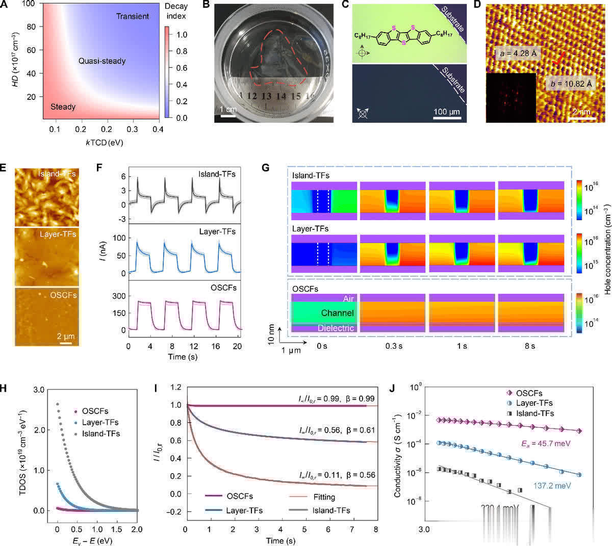 它有有机半导体晶体薄膜(OSCFs)看成空间电场门控载流子通说念,还有一个导电电荷泵层(CPL),中远隔着电介质。
