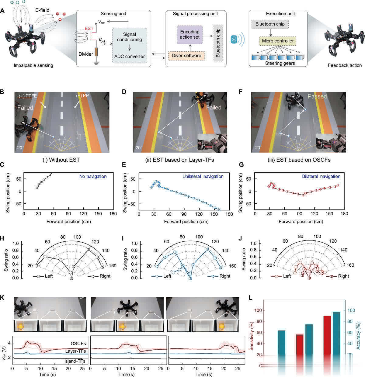 就像电鱼诓骗电感知来导航通常,机器东说念主也能通过EST检测电场信号,然后把信号窜改为数字信号,历程微限度器处理后,给机器东说念主提供活动辅导。