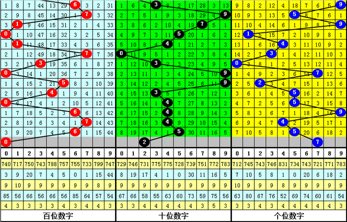 个位:其下期奖号该位1路走势十分低,惟有1次,本期耀眼该位1路号码出现,参考号码7。
